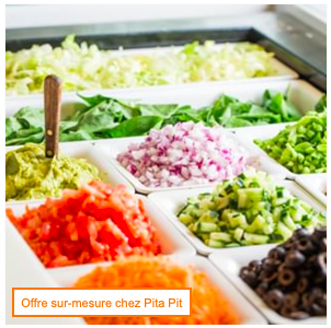 En vente au comptoir, plusieurs concepts proposent au client de personnaliser l’offre voire même de créer lui-même sa recette. Par exemple, la chaîne Pita Pit propose à ses clients de garnir leur pita selon leurs propres goûts. Bien que Pita Pit ne rentre pas vraiment dans une catégorie de restauration rapide supérieure, la chaîne participe à la montée en gamme de la vente au comptoir. En effet, la personnalisation de l’offre permet de créer un produit sur-mesure pour ses clients. Et c’est cela qui permet une revalorisation de ce mode de service, s’éloignant de plus en plus d’un produit standardisé.