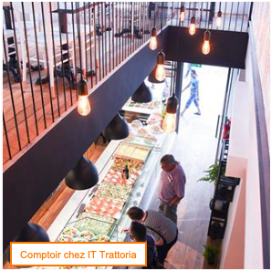 D’autres restaurants font le choix, d’accorder leur mode de service en fonction du moment de consommation. C’est le cas de la chaîne italienne IT Trattoria qui propose un service de vente au comptoir le midi et un service à table le soir. Cette modularité permet aux restaurants d’être en adéquation avec les attentes de leurs clients. En effet, pour le déjeuner, les clients sont à la recherche de gain de temps : la vente au comptoir parait donc idéale. A l’inverse, le soir, les clients prennent davantage de temps, le moment est plus propice à la détente, au plaisir de profiter. Le service à table permettra donc de créer une relation ou encore d’apporter du conseil, qui n’est pas la priorité de tous les clients à l’heure du déjeuner.